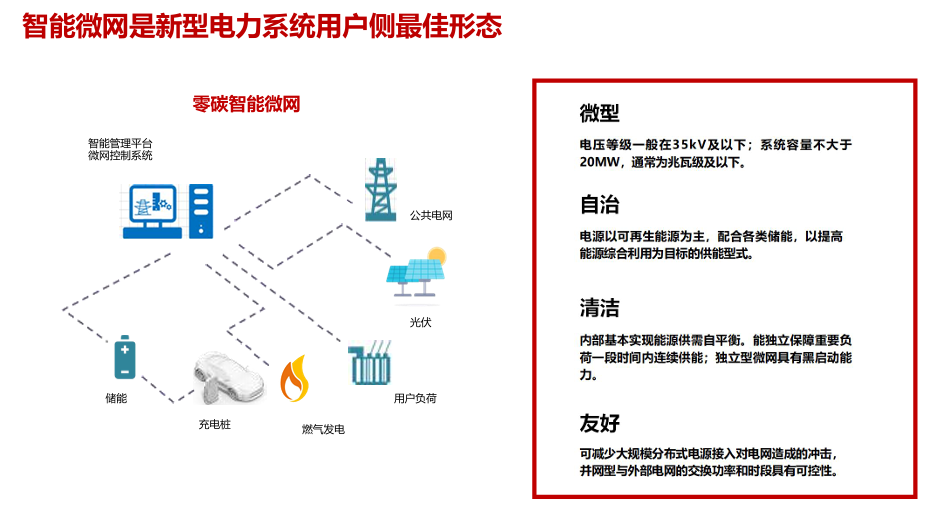 智能微网的核心在于其高度的灵活性和自适应能力,能够根据实际需求动态调整能源分配和存储策略。例如,在大庆油田的零碳油田微网示范项目中,通过“风光火储热用”微网系统,实现了全绿电采油及勘探,解决了油田用电不稳定的问题。